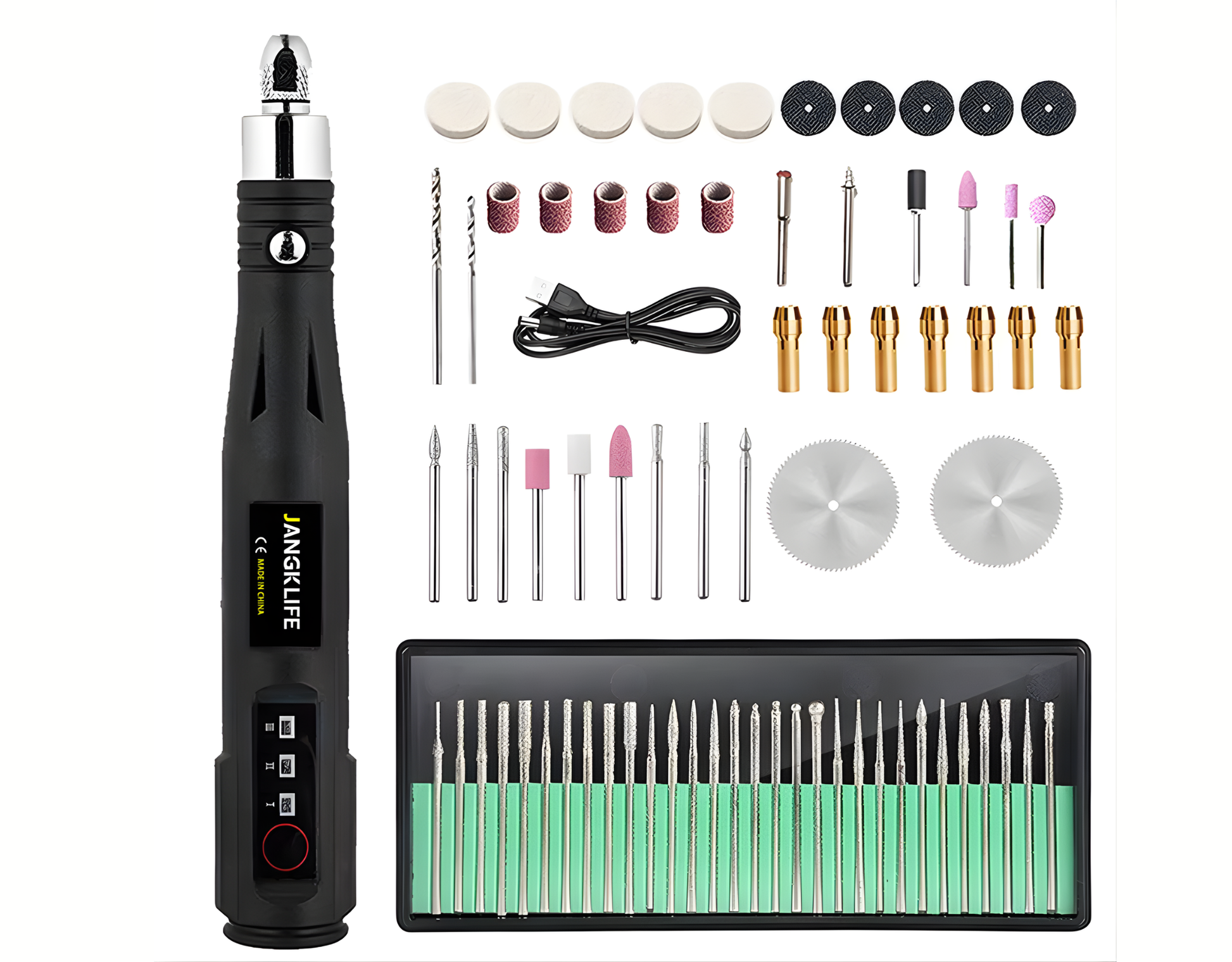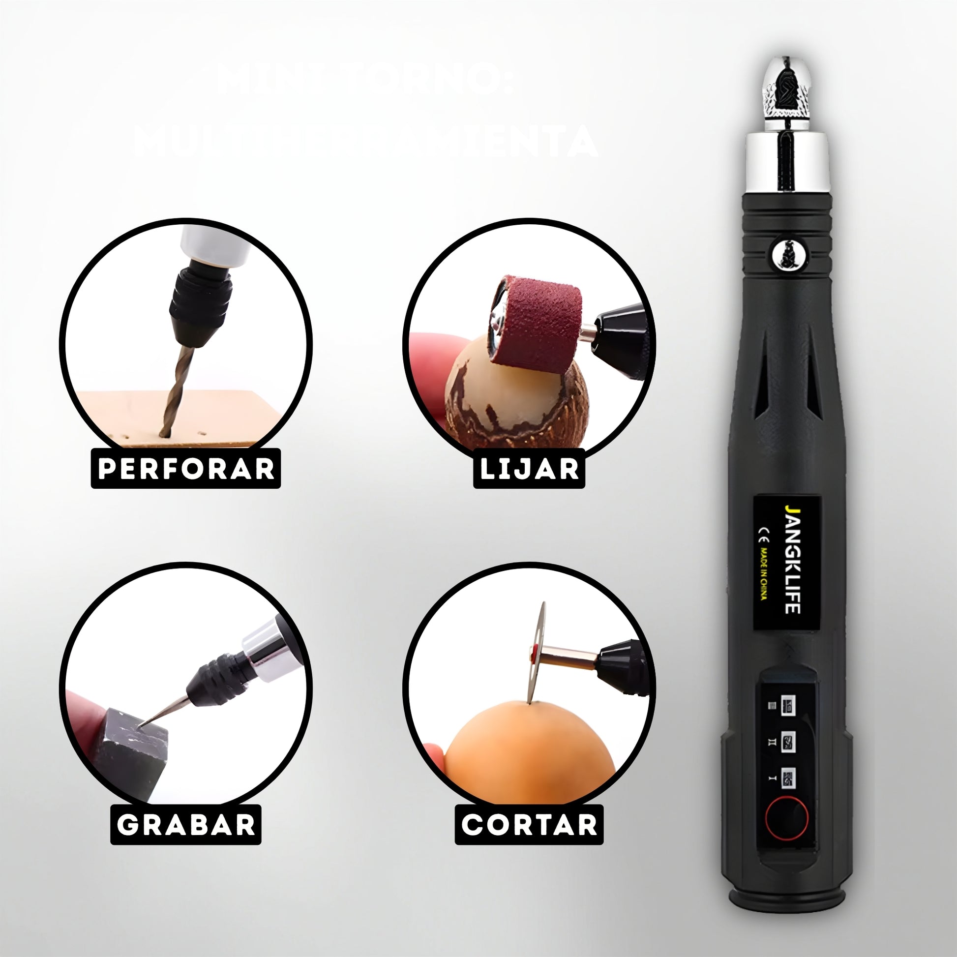 Permite grabado, tallado en madera y jade, lijado de plástico, pulido, corte y perforación.